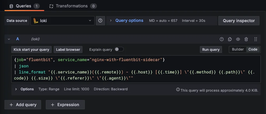 {job="fluentbit", service_name="nginx-with-fluentbit-sidecar"}
