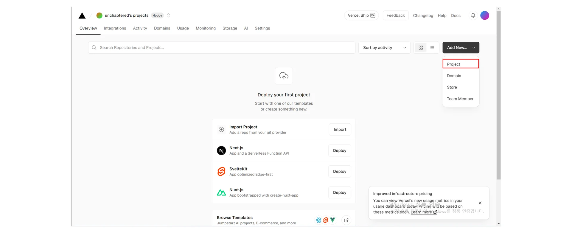 우상단 검정색의 [Add New] - [Project]을 누르기