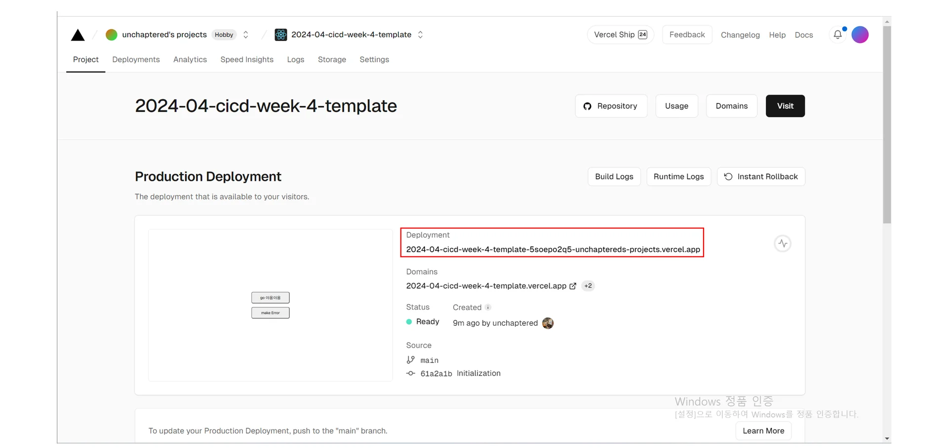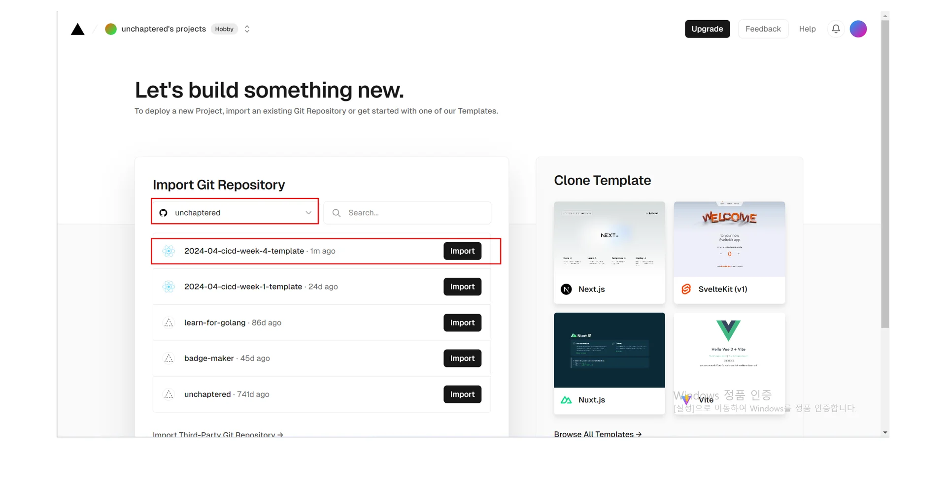 [unchaptered] - [2024-04-cicd-week-4-template] - [Import] 클릭하기