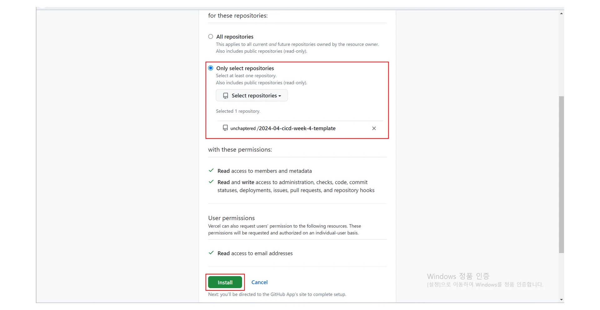 [Only select repositories] - [unchaptered/2024-04-cicd-week-4-template] 클릭하기