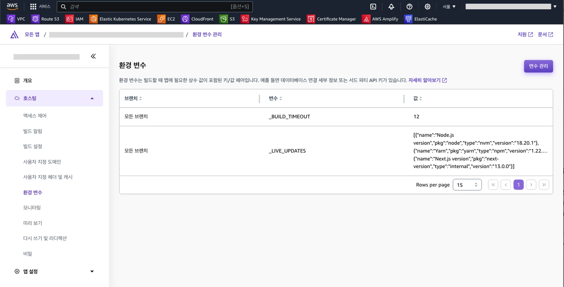3. Amplify Application의 환경 변수는 두 가지가 제공되지 않습니다.