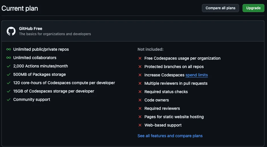 GitHub Free Plan에서는 월 2,000분의 GitHub Action을 무료로 사용 가능합니다.