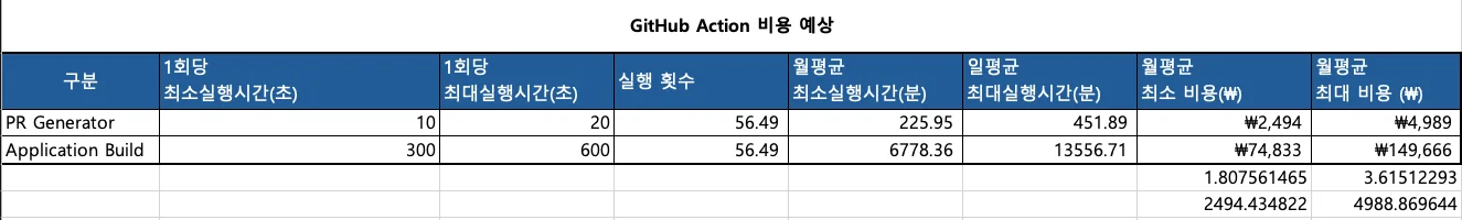본 문서는 CodePipeline/Build를 사용하는 법인에서 GitHub Action을 추가로 도입하는 과정에서의 비용 추정액을 다루고 있습니다.