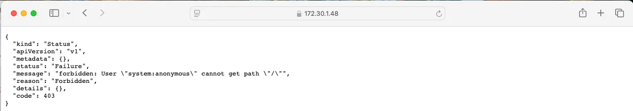 "message": "forbidden: User \"system:anonymous\" cannot get path \"/\"",