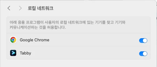 [시스템 설정] → [개인정보 보호 및 보안] → [로컬 네트워크]를 열어주세요.