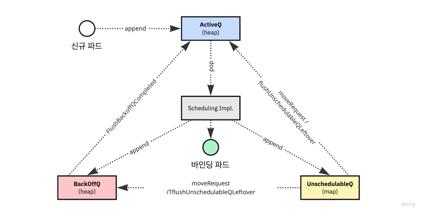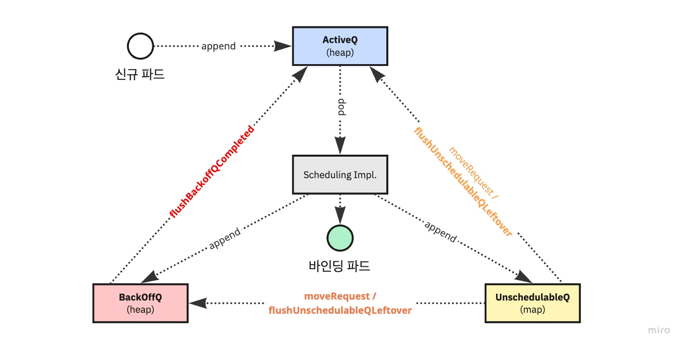 실패 큐(BackoOffQ) : 예약에 실패한 포드로 일반적으로 재시도함