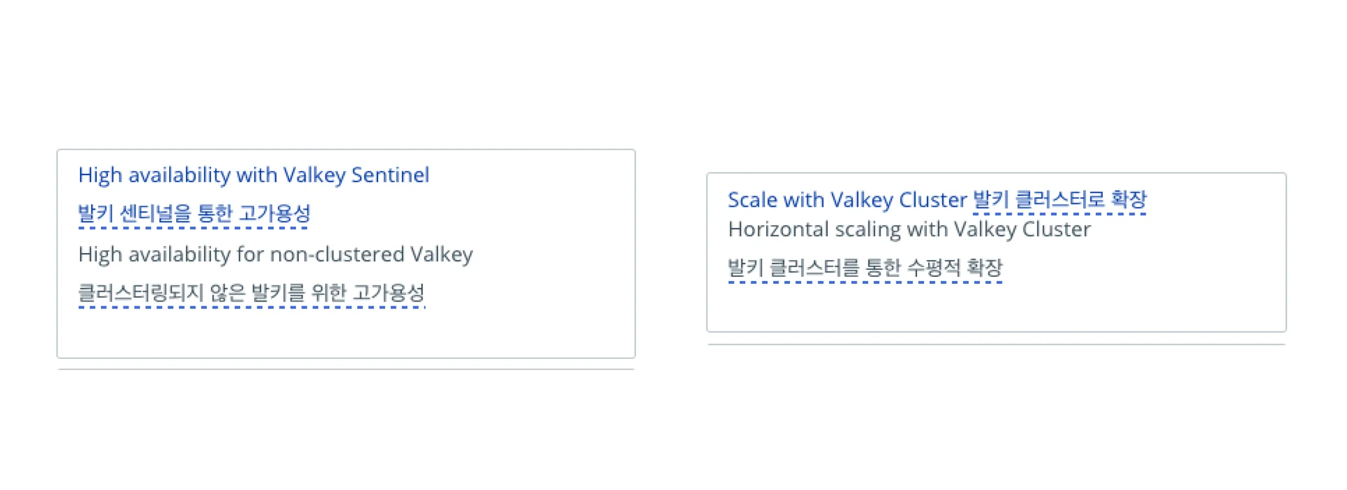 Valkey Sentinel은 Valkey Cluster를 사용하지 않을때, Valkey에 고가용성을 제공합니다. 또한 Valkey Sentinel은 모니터링, 알림과 같은 기타 부수적인 작업도 제공하며 클라이언트를 위한 구성 제공자 역할도 합니다.