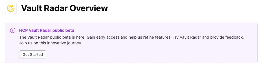생성된 Org, Project 에서 Vault Radar (beta) 이동하기